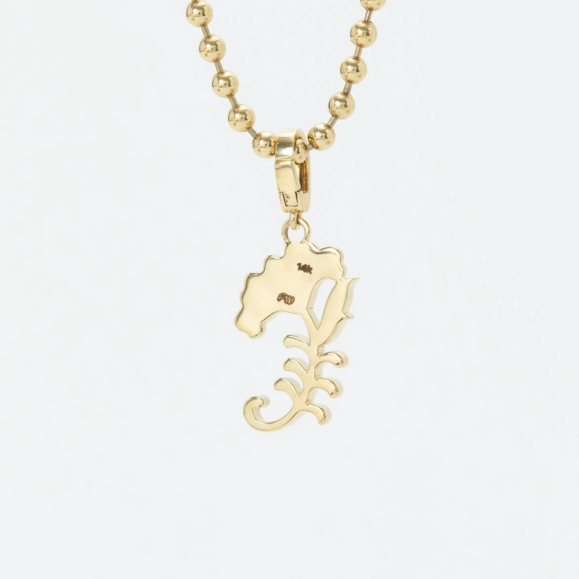 Crafted in 14k yellow gold, this folk inspired Marigold charm has a hinged bail. Measures 23mm tall. Weighs 3.58 grams.